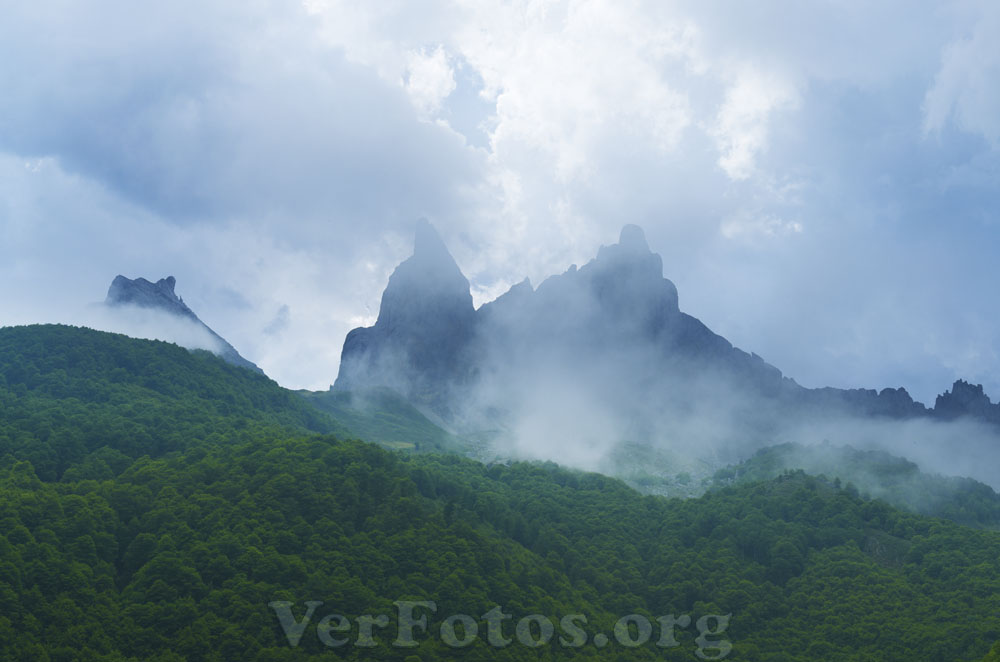 Descripci贸n: Agujas de Ansabere y circo de Lescun. Las agujas de Ansabere entre las nubes en el circo de Lescun, Valle de Aspe, Francia