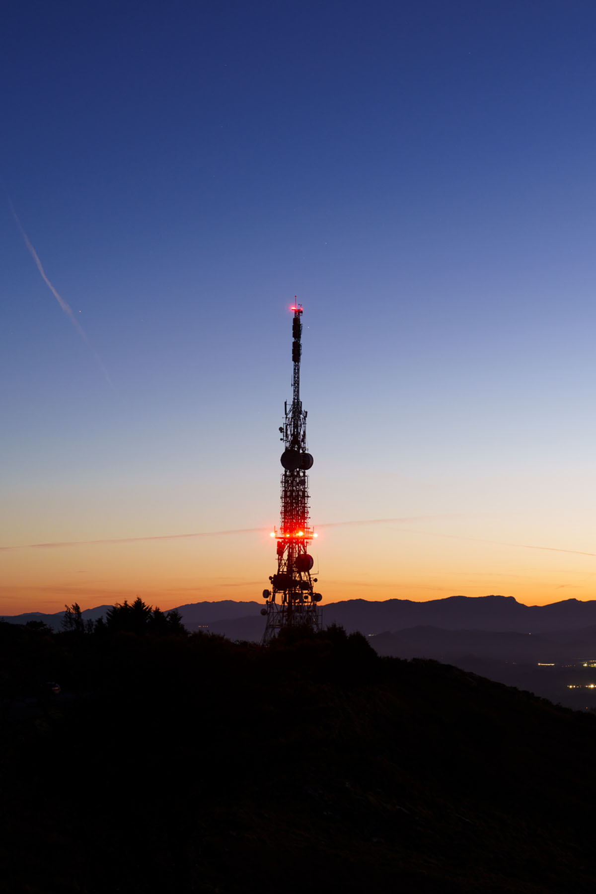 Descripción: Antenas al anochecer en Euskadi. Torre de comunicaciones en el monte Jaizkibel.