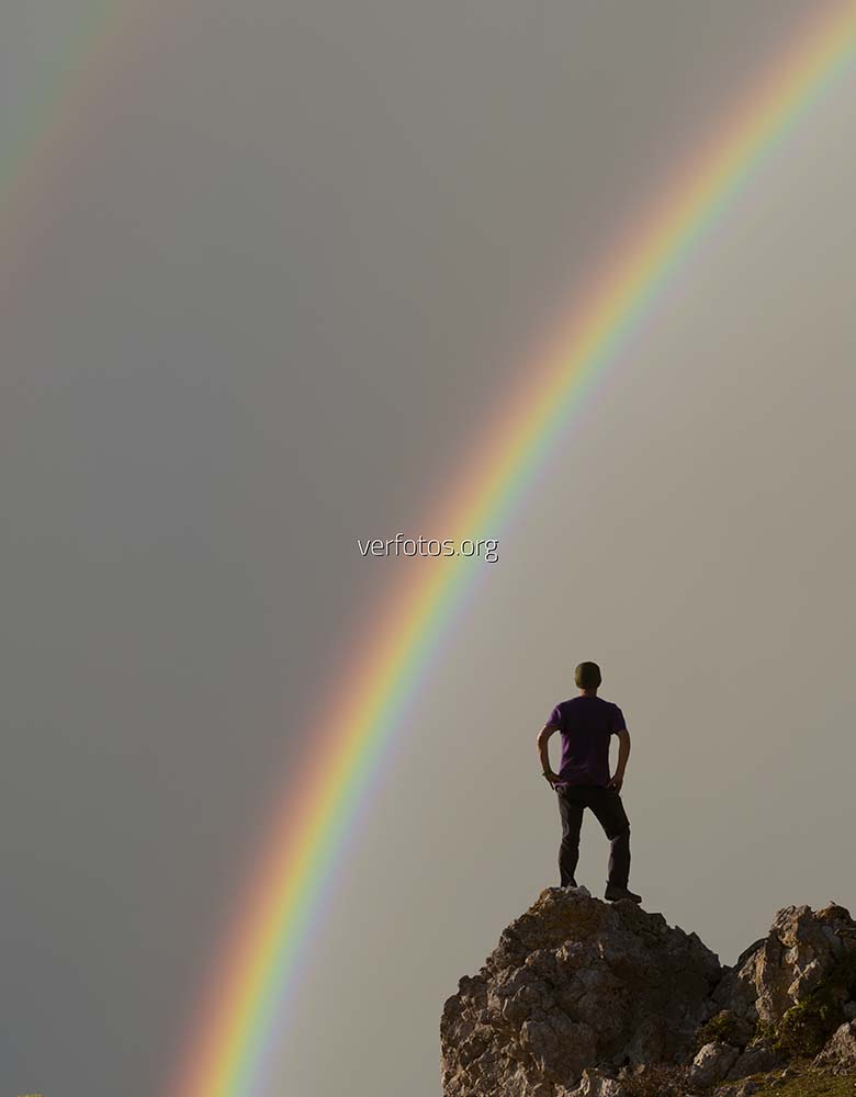 Descripci贸n: Arcoiris. Hombre mirando el arcoiris.