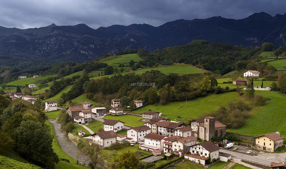Descripci贸n: Atallu en el valle de Araitz con las Maioak en el fondo, Navarra.