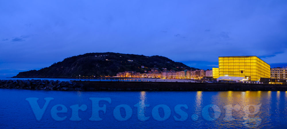 Descripción: Auditorio y monte Ulia en la costa de la Ciudad de Donostia, Euskadi