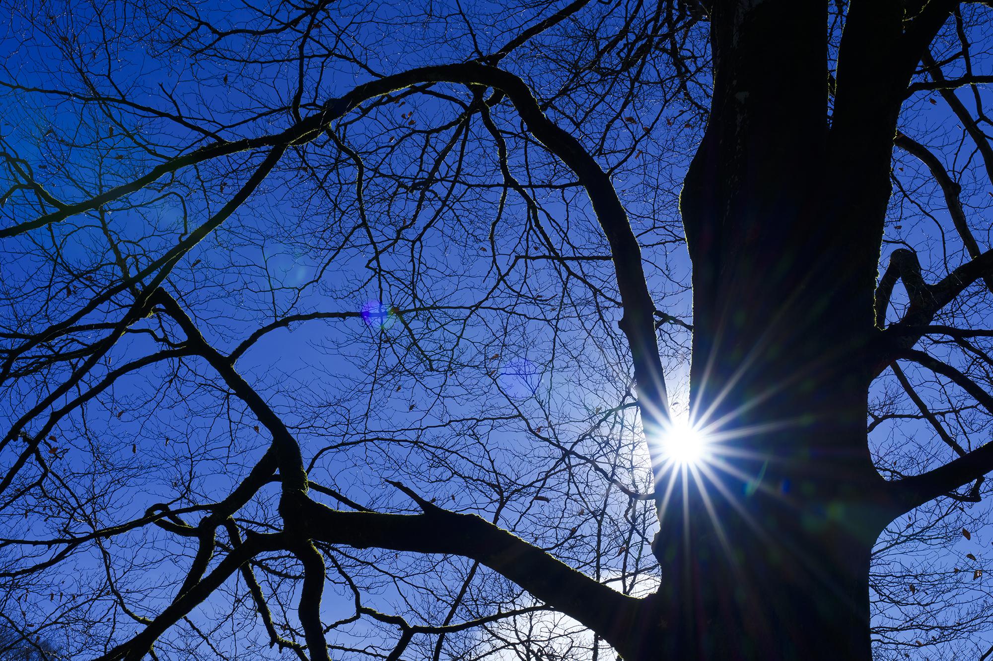 Baile de Luz: El Sol y las Ramas se Encontraron en un Cielo Azul Radiante