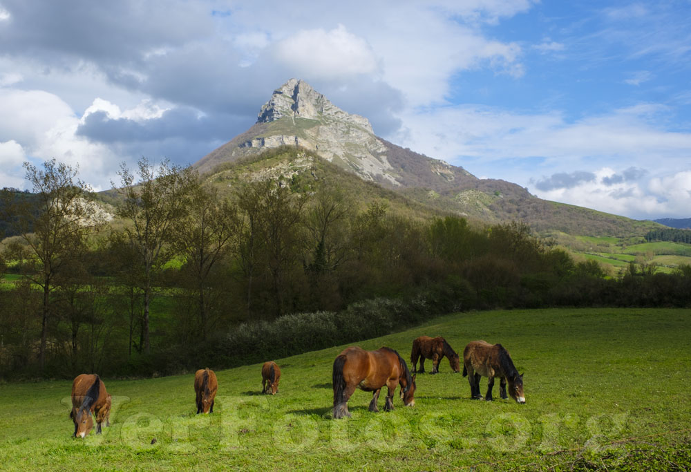 Descripción: Caballos junto al monte Beriain (San Donato), Arbizu, Navarra