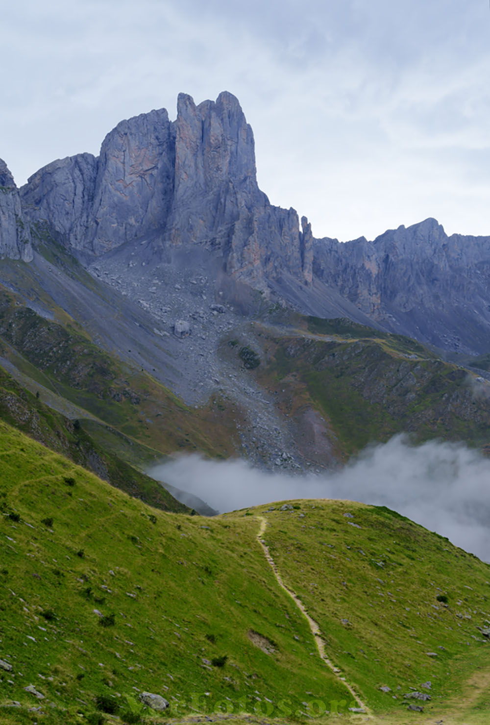 Descripci贸n: Camino agujas de Ansabere. Agujas de Ansabere en el circo de Lescun, Francia