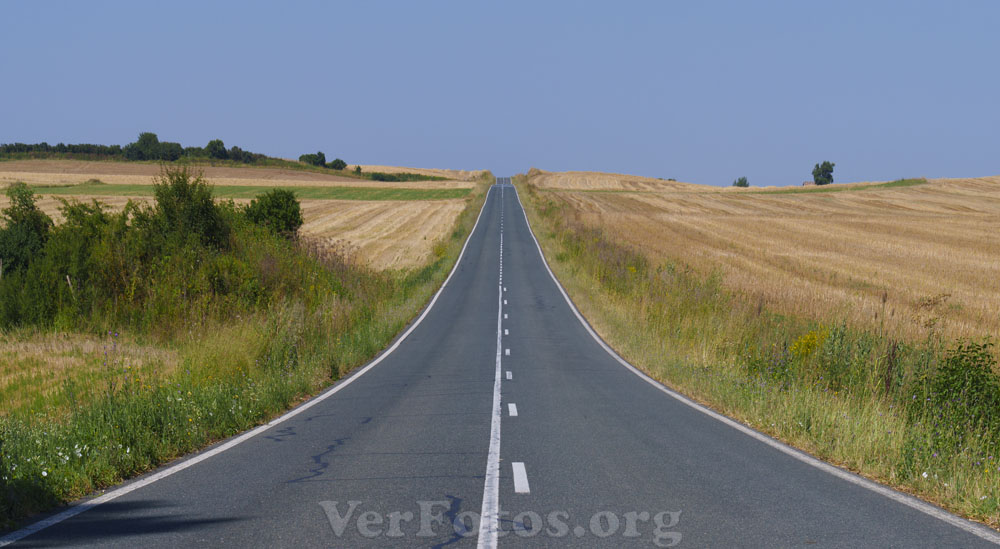 Descripci贸n: Carretera recta. Carretera en la Llanada Alavesa, Euskadi