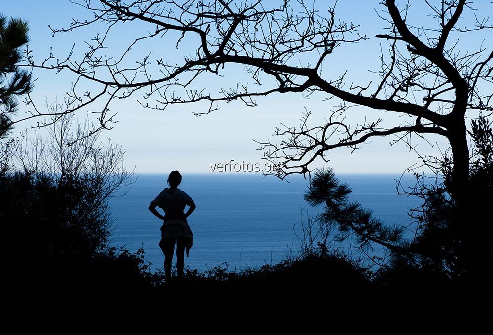 Descripci贸n: Chica a contraluz. Chica caminando junto al mar, en la costa de Euskadi.