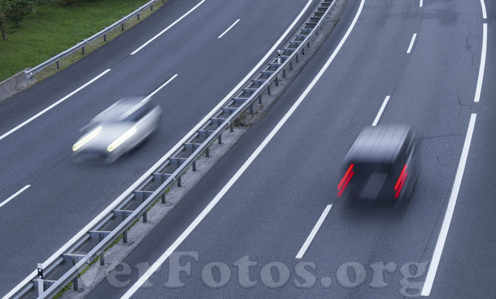 Descripci贸n: Coches circulando. Coches circulando en la autopista GI20 a su paso por Renteria, Euskadi.