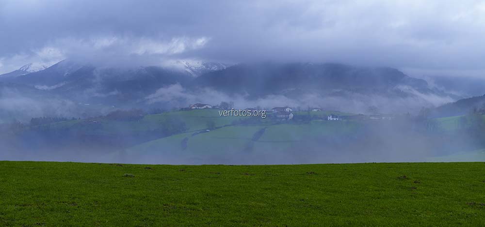 Descripción: Lazkaomendi. Caserios entre las nubes en el barrio de Lazkaomendi, Lazkao, Euskadi