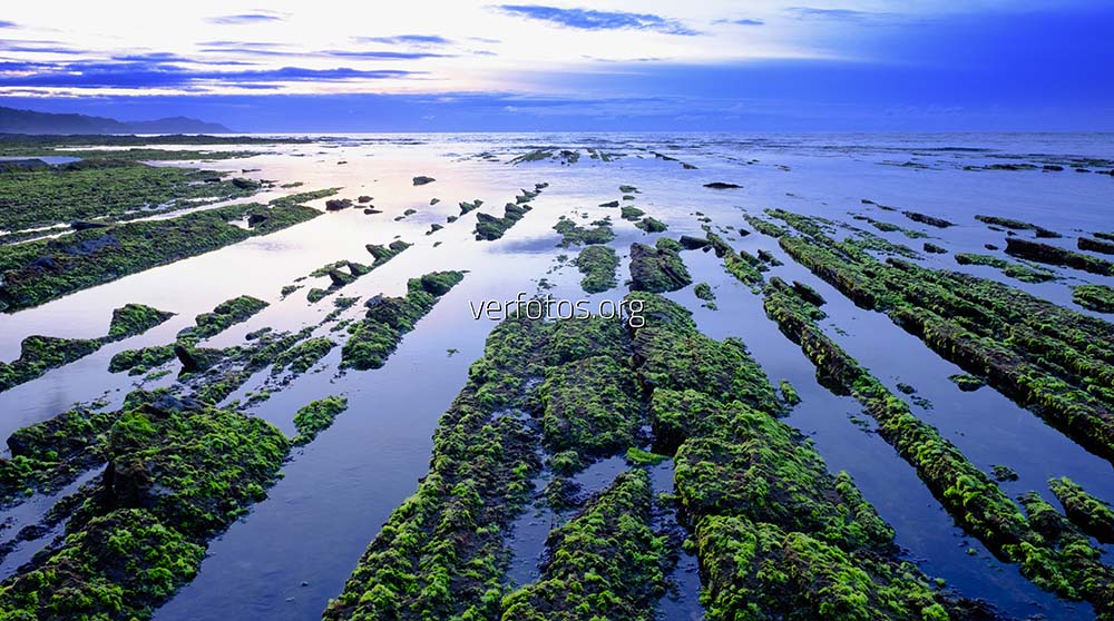 Descripción: Los flysch de Zumaia. Geoparque de Zumaia al atrdecer.