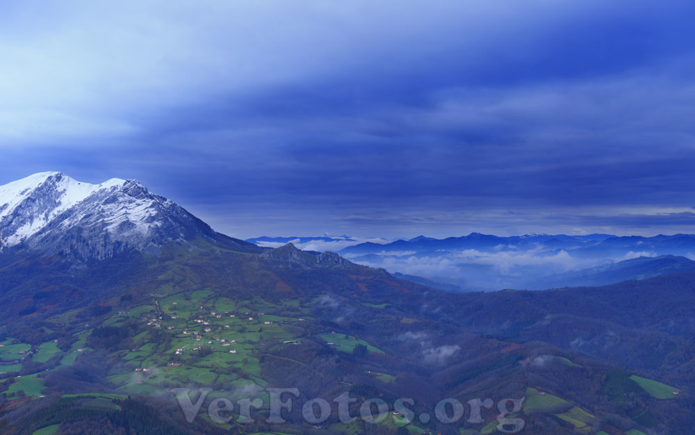Descripción: Monte Balerdi en Navarra. Nieve en el monte Balerdi y localidad de Azkarate en Navarra.