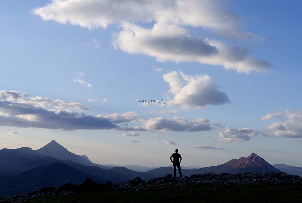 Descripci贸n: Monte Orkatzategi. Senderista en la cima del monte Orkatzategi, Parque Natural de Aratz-Aizkorri, Euskadi