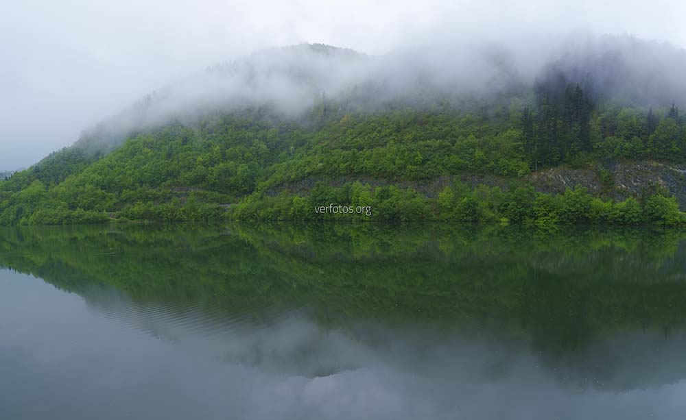 Descripci贸n: Nubes en el pantano de Ibiur. Los bosque se reflejan en el pantano de Ibiur. tolosaldea, Eusladi