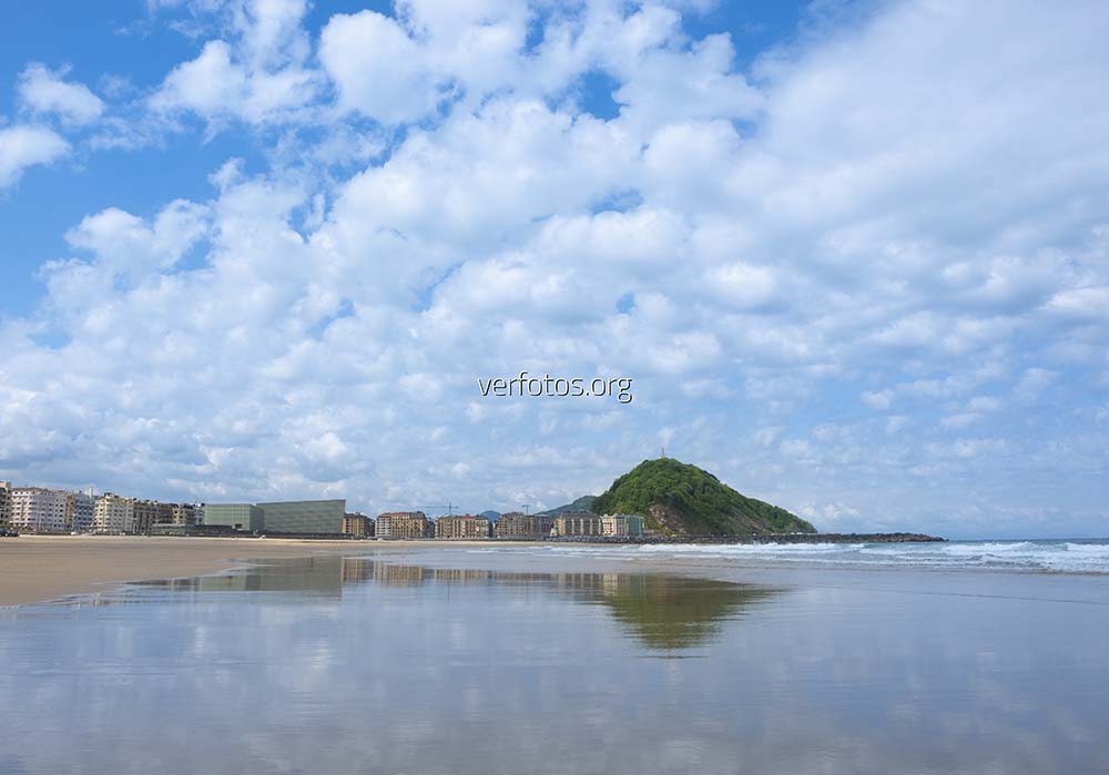 Descripción: Nubes sobre la playa de la Zurriola en la ciudad de donostia- San Sebastian, Euskadi