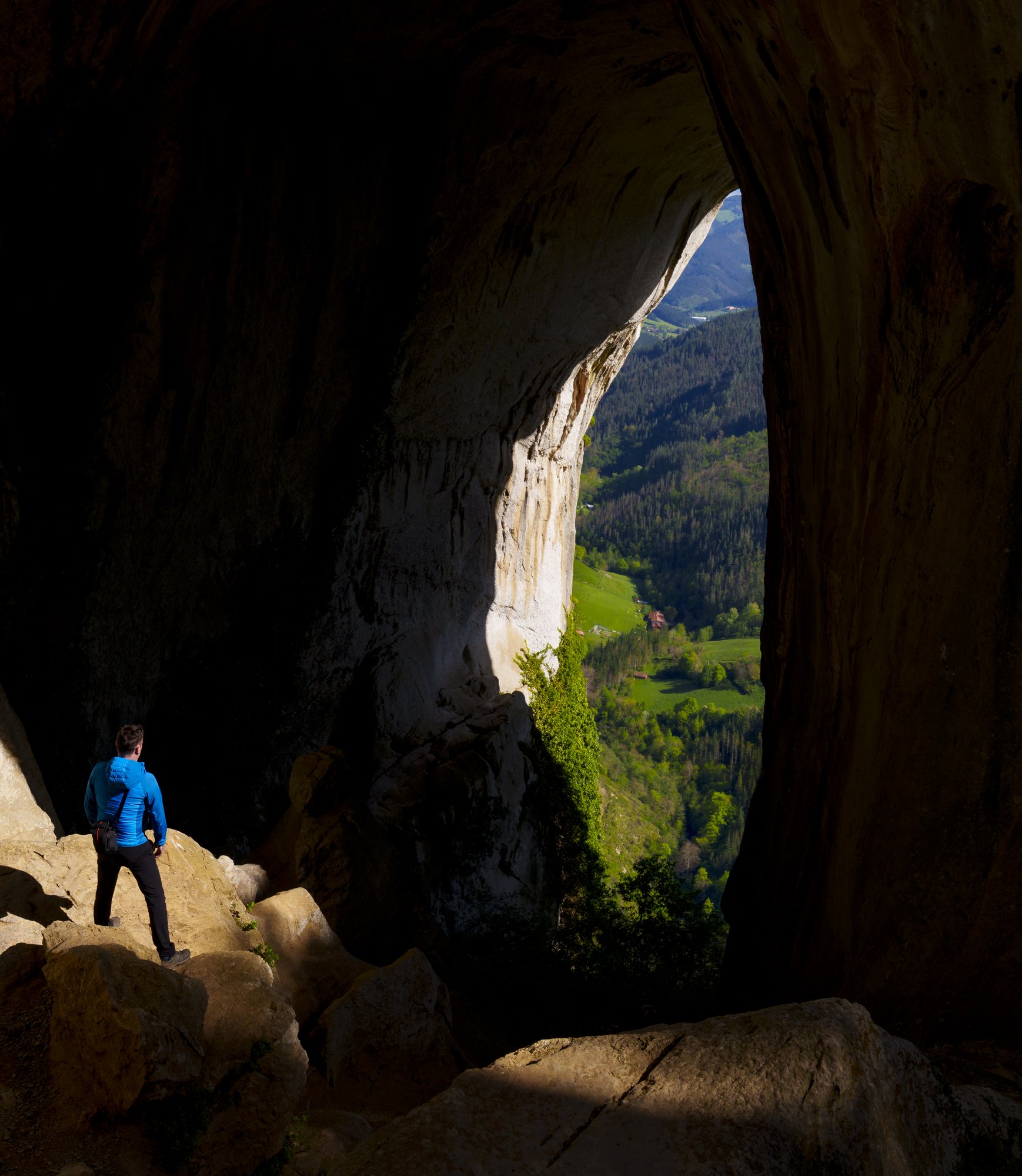 Descripci贸n: Ojos o cueva de Aitzulo. La Cueva de Aitzulo, ubicada en el pintoresco barrio de Araotz, Oñati, se erige como un tesoro natural. Esta formación geológica es famosa por sus impresionantes 'Ojos de Aitzulo', unos orificios que permiten que la luz se filtre, creando un paisaje de sombras y luces mágicas al interior de la cueva. Rodeada de un frondoso bosque, la cueva es un lugar ideal para los amantes de la naturaleza y la aventura.