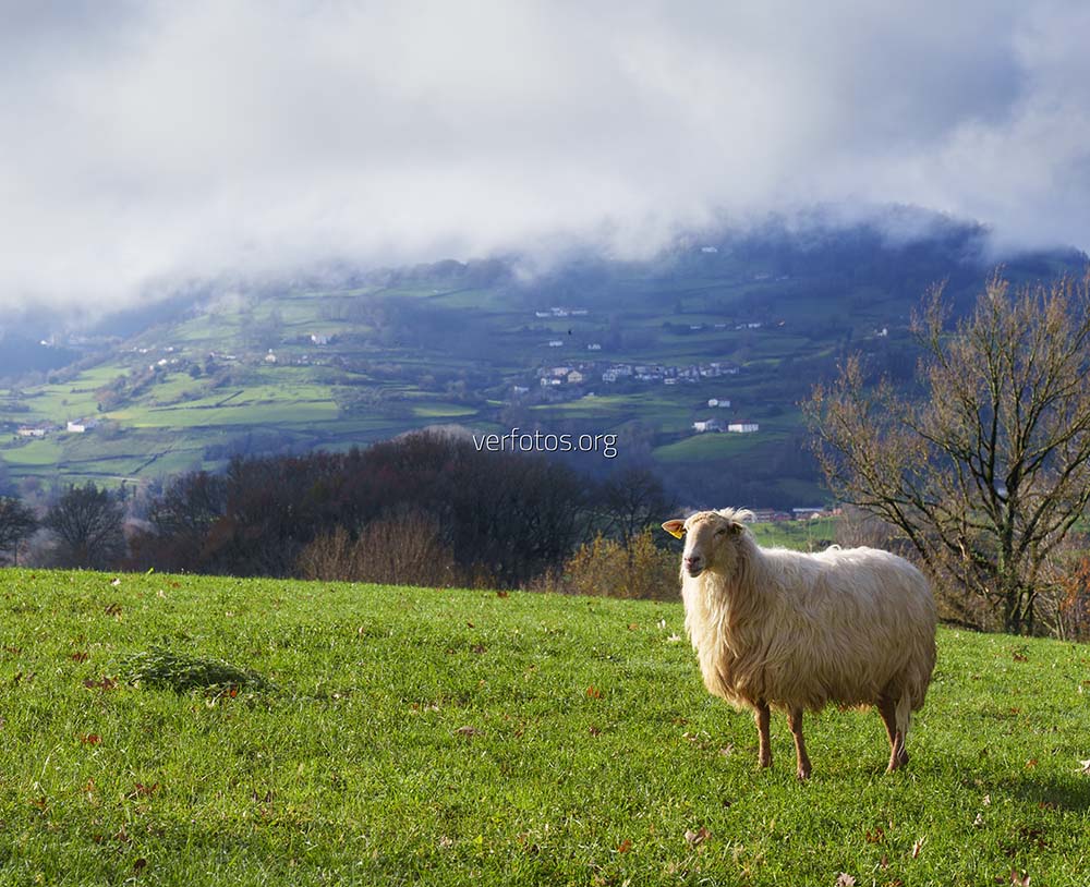 Descripción: Oveja. Oveja pastando en Zizurkil, Euskadi