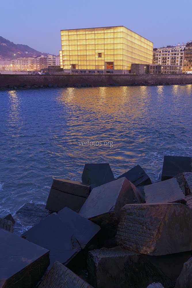 Palacio de congresos y auditorio kursaal iluminado all anochecer