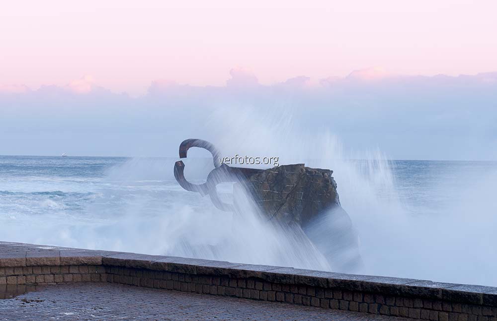Descripci贸n: Peine del Viento. Olas en el Peine del Viento al amanecer en la ciudad de Donostia-San Sebastian.