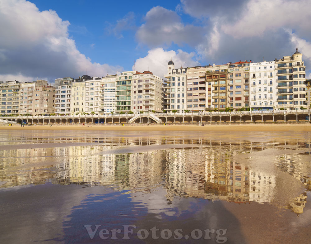 Descripción: Playa La Concha. Playa de La Concha y ciudad de Donostia San Sebastián, Euskadi