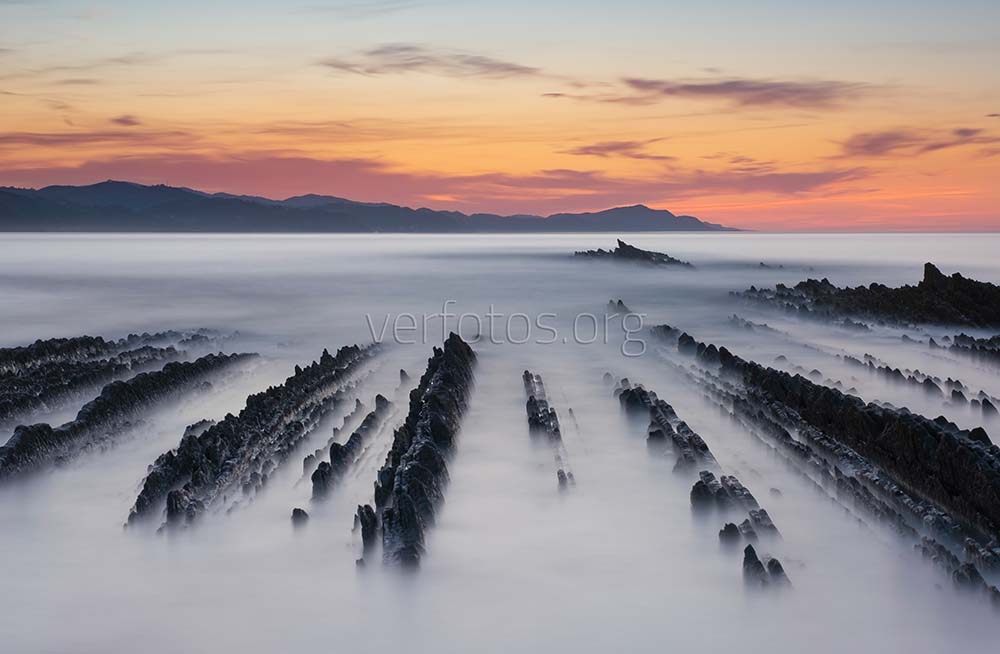Descripci贸n: Playa de Itzurun. Flysch al atardecer en la playa de Zumaia, Euskadi
