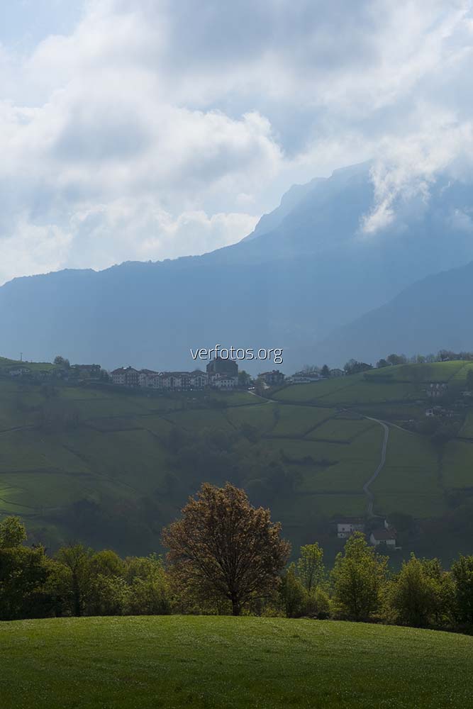 Descripción: Pueblo de Abaltzisketa con la sierra de Aralar al fondo, Euskadi