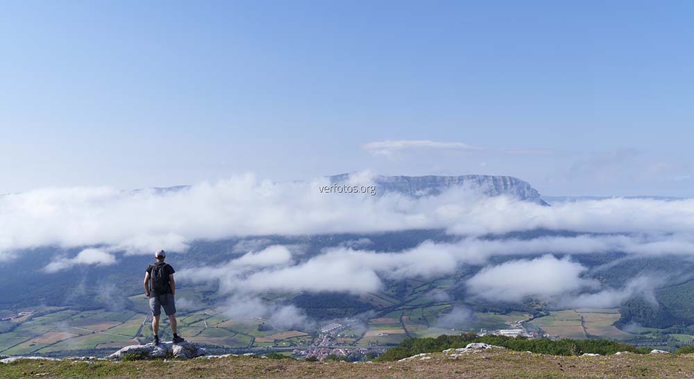 Descripción: Senderista con nubes en la sierra de Aralar, Navarra