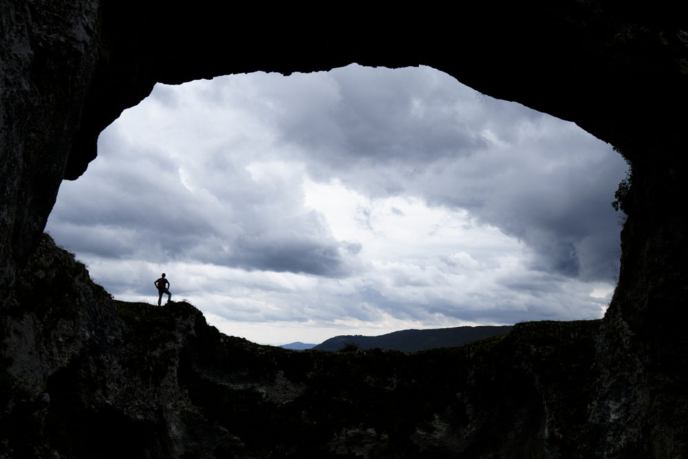 Senderista en Portupekoleze parque Natural de Urbasa-Andia, Navarra