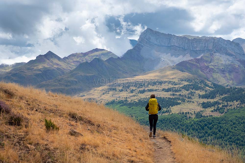 Descripci贸n: Senderista en el valle de Hecho, Parque Natural de los Valles Occidentales , Huesca