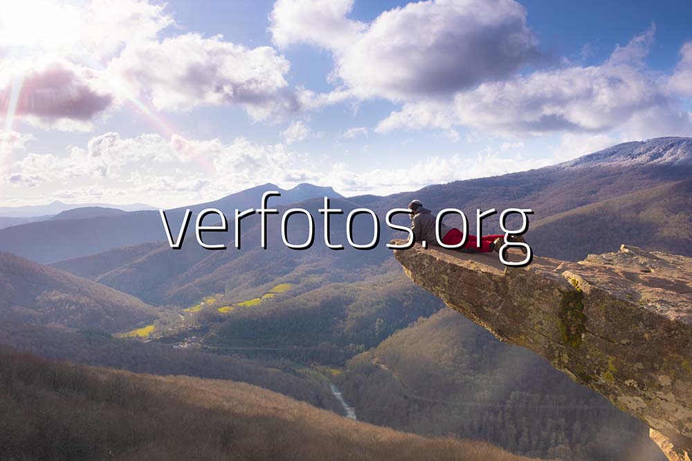 Descripci贸n: Senderista sentado en el mirador de Zamariain, valle de Arce, Navarra.