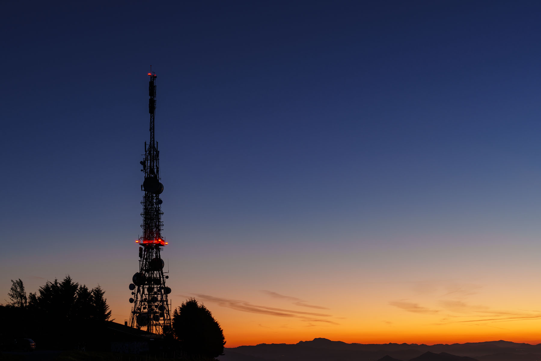 Descripción: Torre de comunicaciones al atardecer. Antenas al anochecer en el monte Jaizkibel, Euskadi